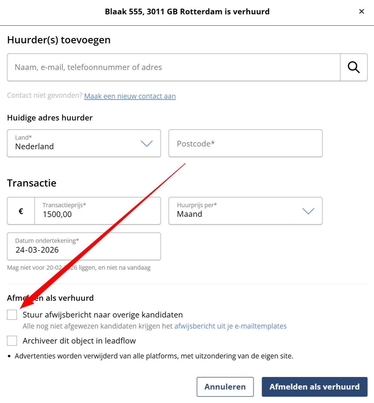 - de woning inmiddels is afgemeld als verhuurd en er nog kandidaten afgewezen moeten worden.