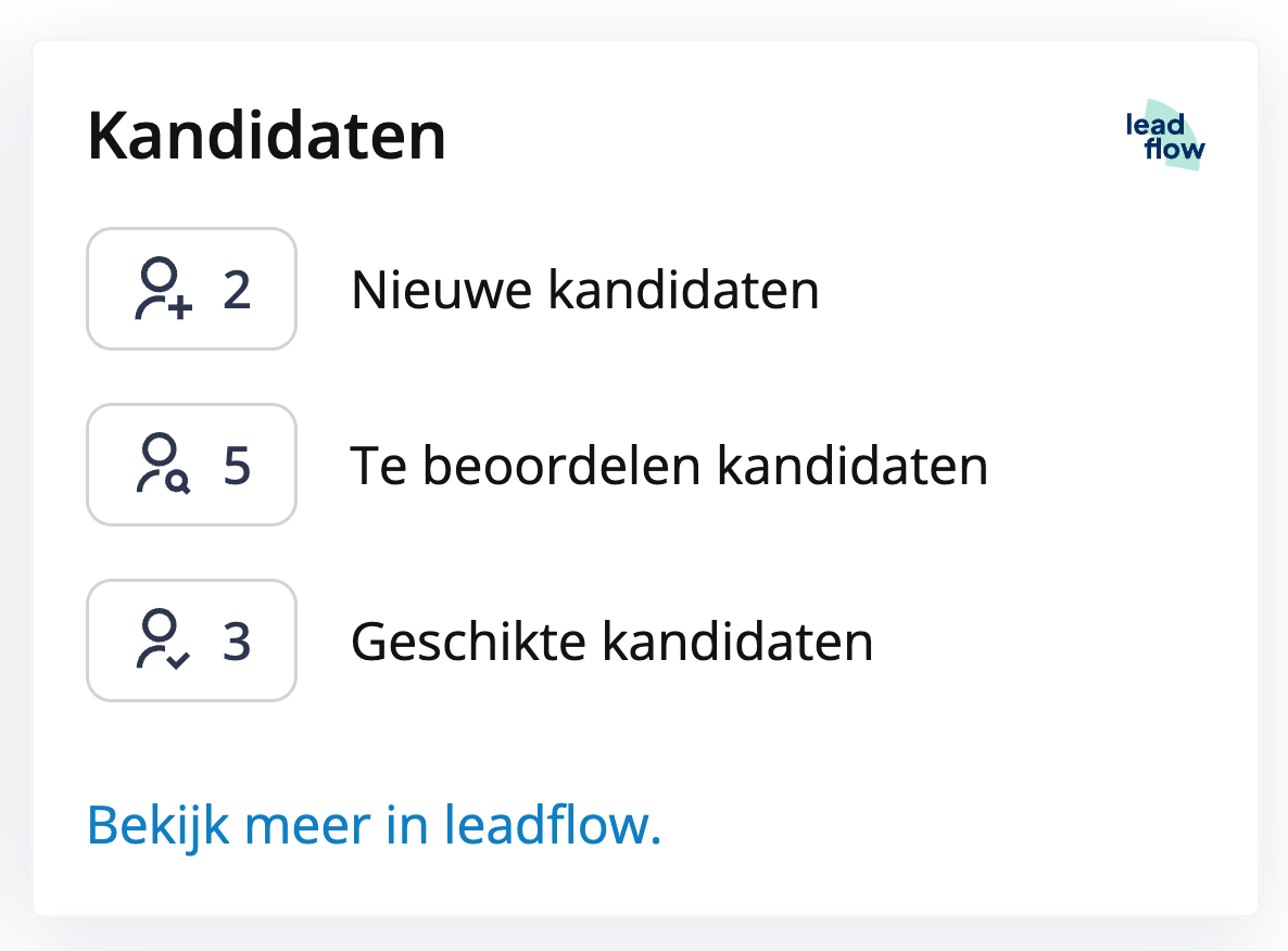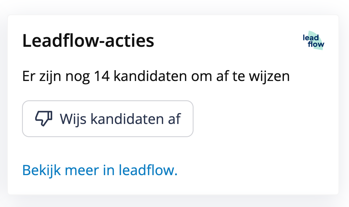 Door op een van de knoppen te klikken zal de advertentie in Leadflow geopend worden en kun je aan de slag met de kandidaten.